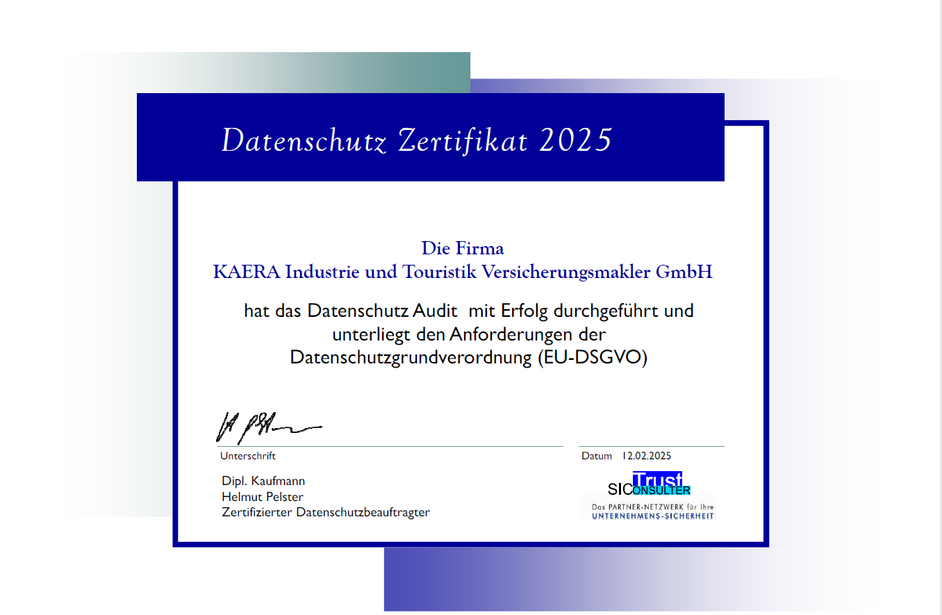 Die KAERA Industrie- und Touristik Versicherungsmakler GmbH freut sich über Ihren Besuch auf unserer Web-Seite und über Ihr Interesse an unseren Unternehmen.